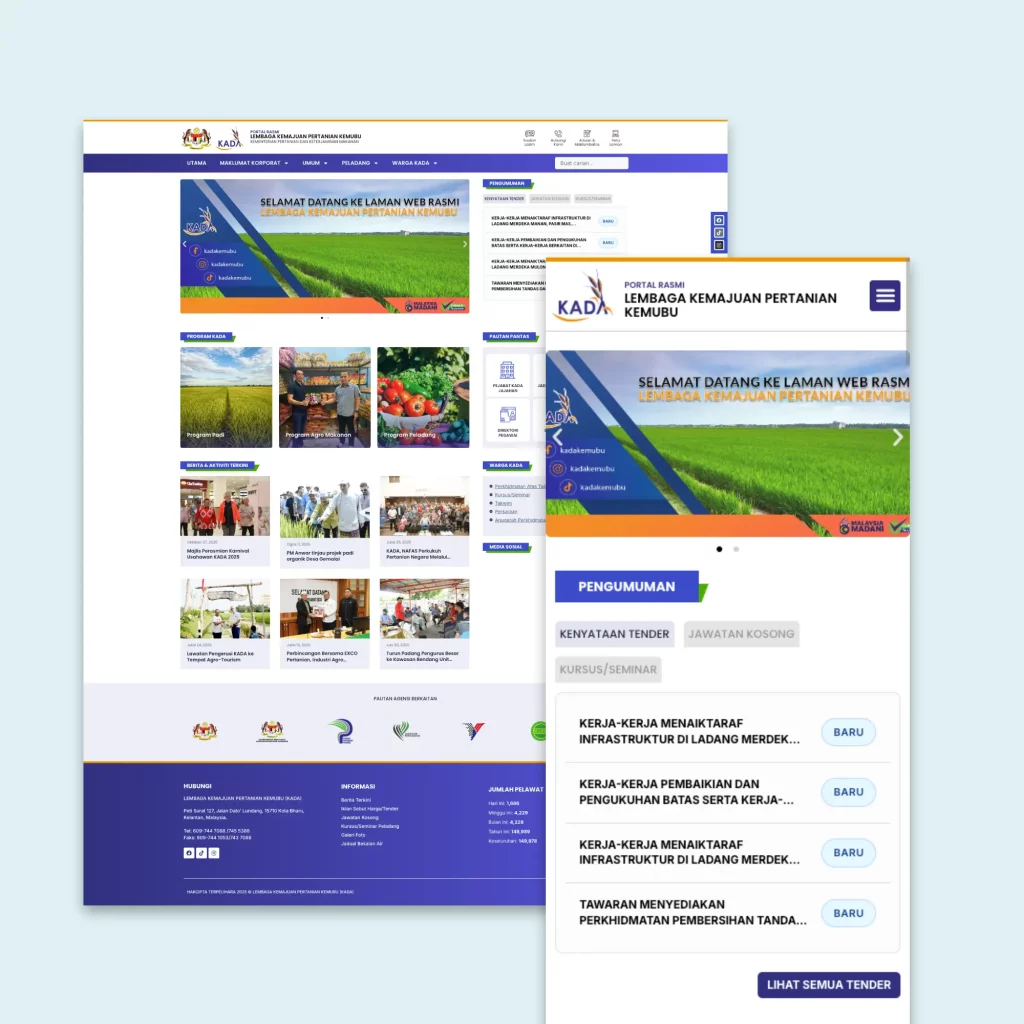 Kami telah melaksanakan penjenamaan semula portal rasmi bagi KADA, badan berkanun di bawah Kementerian Pertanian dan Keterjaminan Makanan yang menerajui pembangunan padi, agromakanan, dan peladang di wilayah Kemubu.